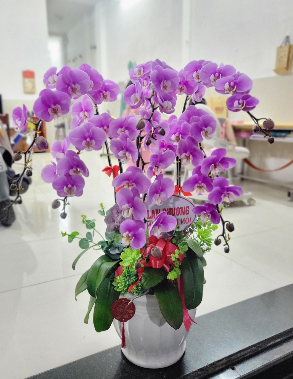 Chậu hoa Lan Hồ Điệp làm quà tặng doanh nghiệp, đối tác: Thể hiện sự tôn trọng và chúc phát đạt.